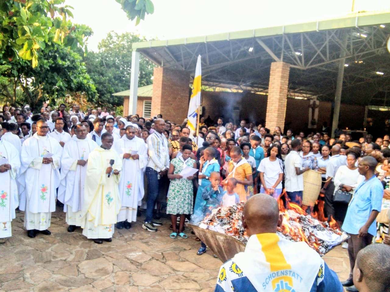 En date du 17/2/2026, à la veuille de mercredi des cendres, a eu lieu au Sanctuaire marial Reine de la Paix et de la Réconciliation, une messe à l’occasion du renouvellement de l’Alliance d’Amour pendant le mois de février. Cette messe a été présidée par Père Léonce NTAKIRUTIMANA Isch, avec d’autres Pères de Schoenstatt comme concélébrants. Rappelons que la famille de Schoenstatt se rassemble normalement en date du 18 de chaque mois pour renouveler cette alliance conclue un avec la Mère Trois fois Admirable. Vu que le 18 de ce mois se coïncide avec le mercredi des cendres, on n’a pas voulu insérer un autre événement pour faciliter tout chrétien d’entrer librement dans la sainte période de carême.